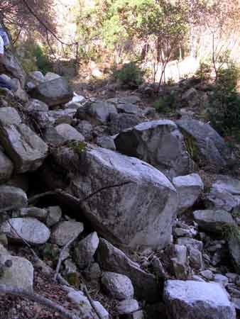 大岩、小岩がゴロゴロ、浮石、苔で滑る、落葉で滑る、根っこ、何でもあり状態です。