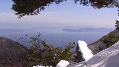 武奈ヶ岳や湖北の山々が白く青空に映えて、琵琶湖は青くて大きくて、比良の山は空も湖も青い日が最高ですね。