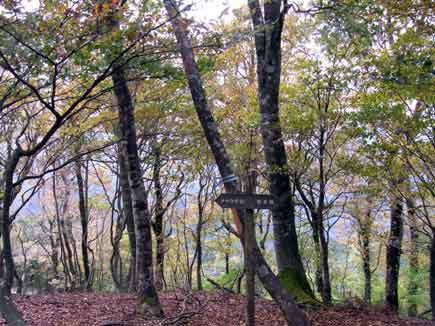数本の赤や黄色の黄葉を愛で、フカフカの落葉を踏んで少し時間をロスしましたが三国峠(山頂)につきます。