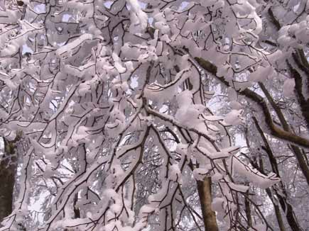 ここからは白い世界、満開の雪の花はその重みに耐えかねてまるでシダレサクラを見るような。
