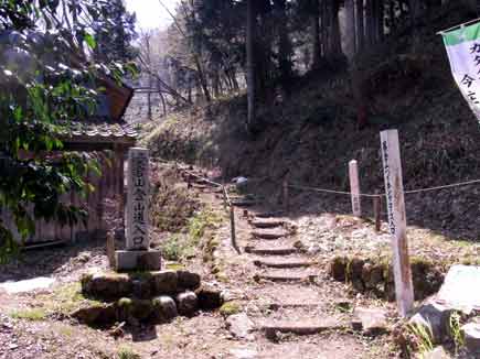 登山口新羅神社横↓ 右手樹林下にカタクリ群生です。