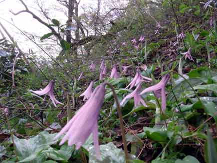 ここのカタクリの多さは圧巻で一面のカタクリ、ビッシリのカタクリで「キャハー フハァー」ピンクのじゅうたんです。