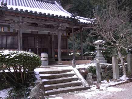 登山口善法寺(観音寺)はひっそり雪を載せて尼寺の雰囲気そのまま、隆々と300余年を生きて来た巨木お葉付きイチョウは長い間ずっとお寺を見下ろし守ってくれたのですね。