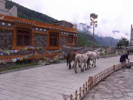 日隆は標高3160mに位置し、白い石造りの家、ホテルなど立ち並ぶハイキング、登山、トレッキングの基地です。小さな土産物屋さんもあります。