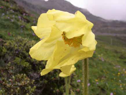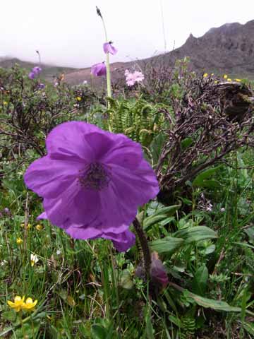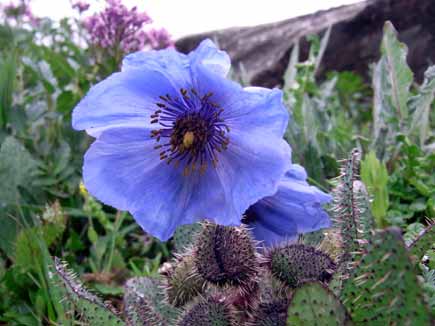 ここでは「ヒマラヤの青いケシ」と呼ばれるブルーポピーの他、パープル、イエロー、レッドポピーが咲いています。