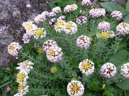 ワスレナグサやシオガマ、サクラソウほかたくさんのお花が咲いています。