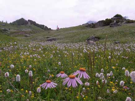 次から次にお花があふれています。やはり日本で見る花とほんの少し違うようでシオガマの仲間?、タツナミソウの仲間?、オドリコソウの仲間?イチゲ?という感じです。