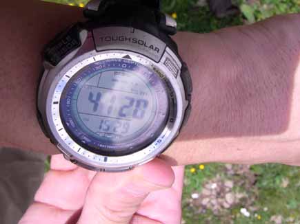 ここで引返します。ツァーガイドさんの高度計は4120mを表示しています。時間も押して来ました。