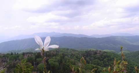 (山頂に1輪咲き残るタムシバ)