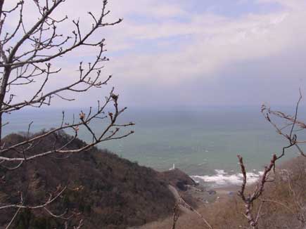 海岸線に打ち寄せる白い波が見え、その向こうには佐渡島が横たわっているのですがそこまでは見えませんでした。