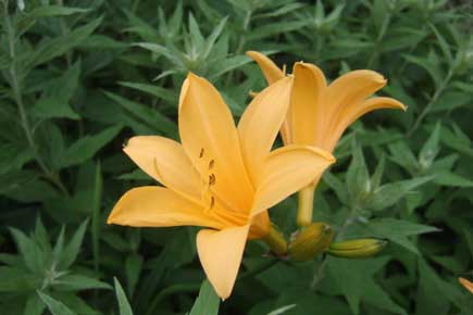 なお進むと前方に黄色い斜面???ニッコウキスゲです。艶やかで大きな花は斜面を黄色に染めています。
