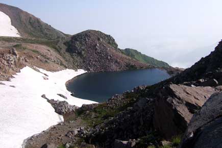 雪渓、池、あふれる花に夢心地、夢歩きで室堂に帰り着きます。