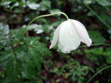 数歩先も見えなかった山頂からしばらく下るとそれも解消し、スミレ、ニリンソウ、エンレイソウとお花に出会いもう先程の不安はキレイに忘れています。