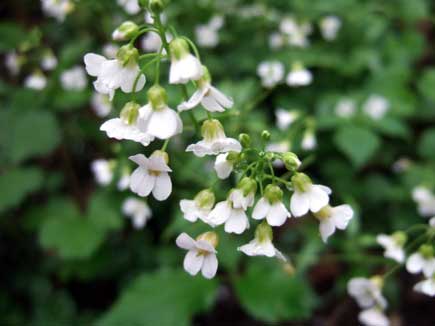コンロンソウは花盛り、真っ白の瑞々しいお花です。