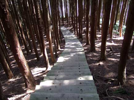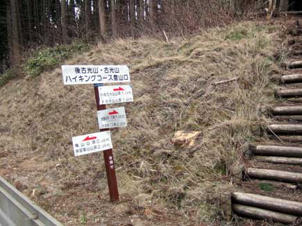 駐車スペースは登山口近くに確認(長尾峠)するが、植林の中に長く続く階段は誘うように暖かい木漏れ日が降り注いでいる。