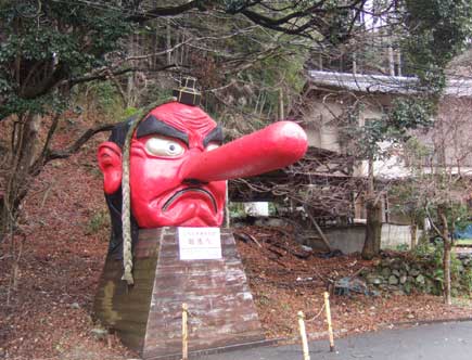 駅に降りると一番に感じるしんと張り詰める冷気(市内とは4度ほど違うそうです)草木の匂い、そして鞍馬と言えば牛若丸、その牛若丸に剣術を教えたと言うゆかりの大天狗です。