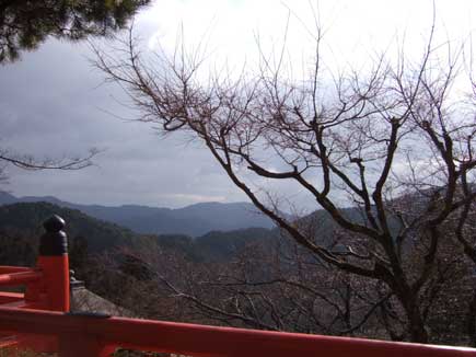 階段の多い参道を上り本殿から比叡の山並みです。春には桜、秋は華やかな紅葉に染まるのでしょう。