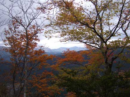尾根に出ると思いがけずまだまだきれいな紅葉に出合い大感激、もう殆ど散っていると思っていたので大もうけです。