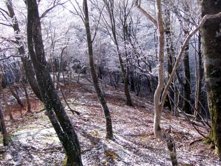 予期せぬ霧氷と名残の紅葉も殊の外美しく![]()