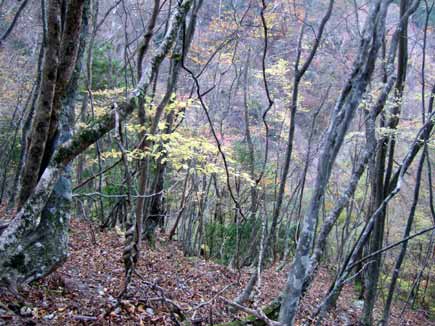 自然林の中をどんどん下ります。途中ハシゴがいくつもありますが全て要注意、慎重に。道も荒れて落葉、石、ザレなど滑りやすいですが大変良いコース、個人的には好きです。