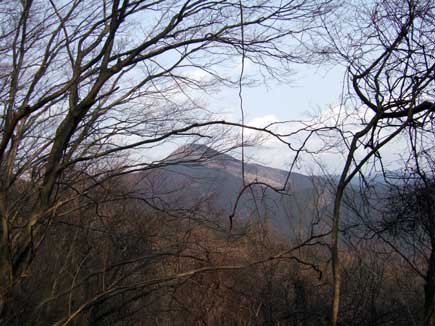周囲の山は全く雪の気配なくここから見える山では三峰山だけがうっすら白いです。今日から明日は寒波で週末は快晴の予報なので上手く行けば三峰山で霧氷が見られるかな〜。かなり気になる存在です。