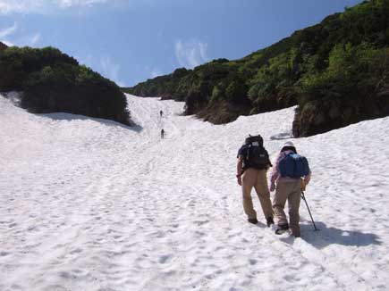 極楽平を過ぎ雪渓にさしかかる。