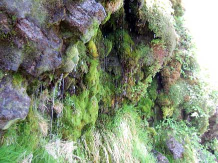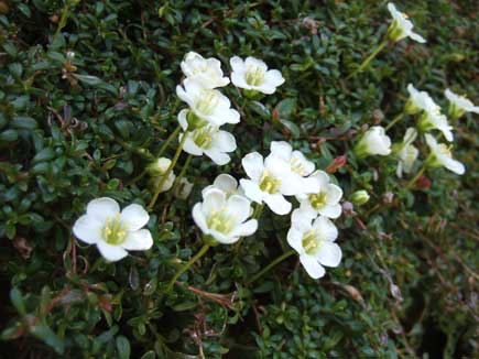 岩清水の水場はイワウメの白い花から清水が滴り落ちる。清水を得て満面の笑みのイワウメ。