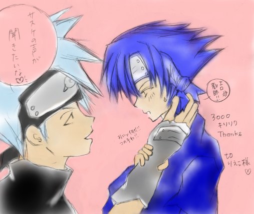 Comment:りえこさまからの3000ヒットのリクです★キス寸前とかいうリクだった・・・なんだか全然答えてませんね(涙)ダメダメですが、私にはこれが限度のようでした(爆)それにしてもなんか、カカシ先生、めちゃくちゃエロ教師になっているような気がします・・・どどど(汗)でもカブトさんとのやりとりで立派にサスケちゃんを守った彼はやっぱりかっこよかった・・・そして眠り姫のサスケちゃんが素敵でした・・・またいつかラブいちゃカカサスリベンジ!