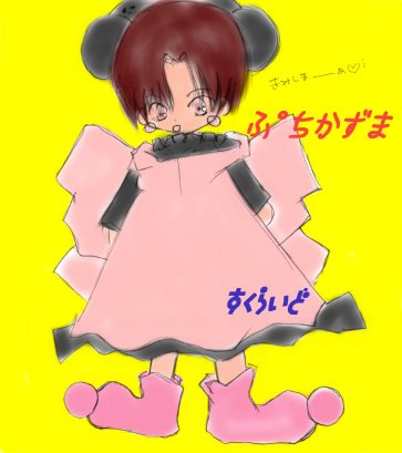 COMMENT:悟空ちゃんに続いて、カズ君にも着せてしまいました。でじこというよりは、なんとなくぴょこらって感じがします(笑)うーん、初めてのスクライド絵がこんなのでいいのでしょうか・・・いいや、楽しいから(涙)