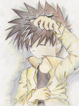 寝てる飛影ちゃんです。我ながら「おお萌え」とか思った作品(アホか)。100%色鉛筆。 5000HITになる前から5000HITのロゴつけて 出番を待ってた作品;; 自分がこんな体勢して ごろごろ寝っ転がってた時に、「あ、飛影がやったら可愛いだろな」と思ったのが書いた原因。 色鉛筆革命してよかったな〜。ただ茶色い髪の毛なのが…;; でもこの絵は好きですね。