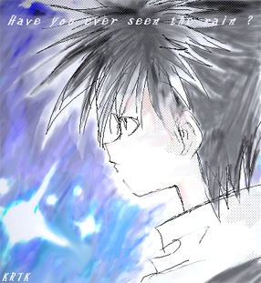「Have you ever seen the rain ?」は某歌の歌詞から〜♪「貴方は雨を見たことがありますか?」て意味ですが。 なんとなく雨の絵を描きたかっただけ(あまり雨に見えんぞ;;) 人んちのおえけーで勝手に書いてコピペして加工した。最近フォトショ使ってねぇ…。使いにくいねんもん だが宝の持ち腐れにならぬよう注意せねば…。