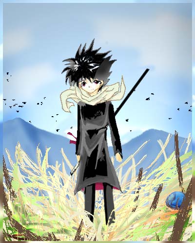 確か先に背景描いた気がする。それから飛影を草むらの中に立たせたの。