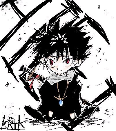 なんとなく、頭ギザギザの飛影が描きたくなったんで描きました。別名ちびファイターです。 モチーフは「忌み子飛影」なんですけど、飛影幼少時代もっと怖いしな…。 後ろ「HIEI」て書いてるの、わかるかどうか不安だったんすけど、分かってくださった方がいて安心しました(^ヮ^) あえて目にテカリを入れないようにするとこうなることを覚えておこう(^^;)目がちょっといつもと違うんですよこれ。丸顔はうまくいったな…。問題は足の位置かな;;