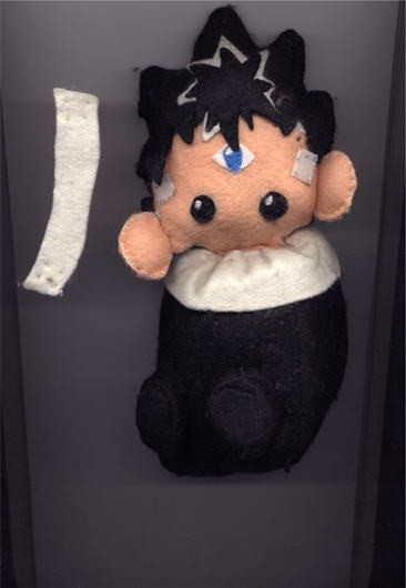 自分で作った幽白人形の第一号がこれです。第一号の割にはすごく3次元にできていて